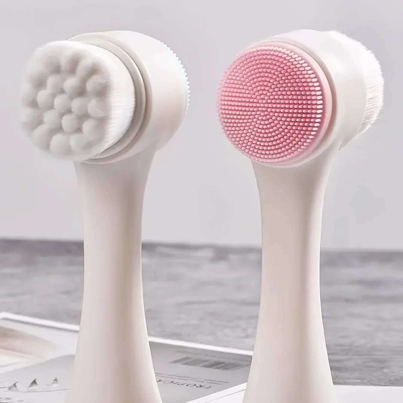 1pc Double sided facial brush with soft bristles and silicone facial cleanser